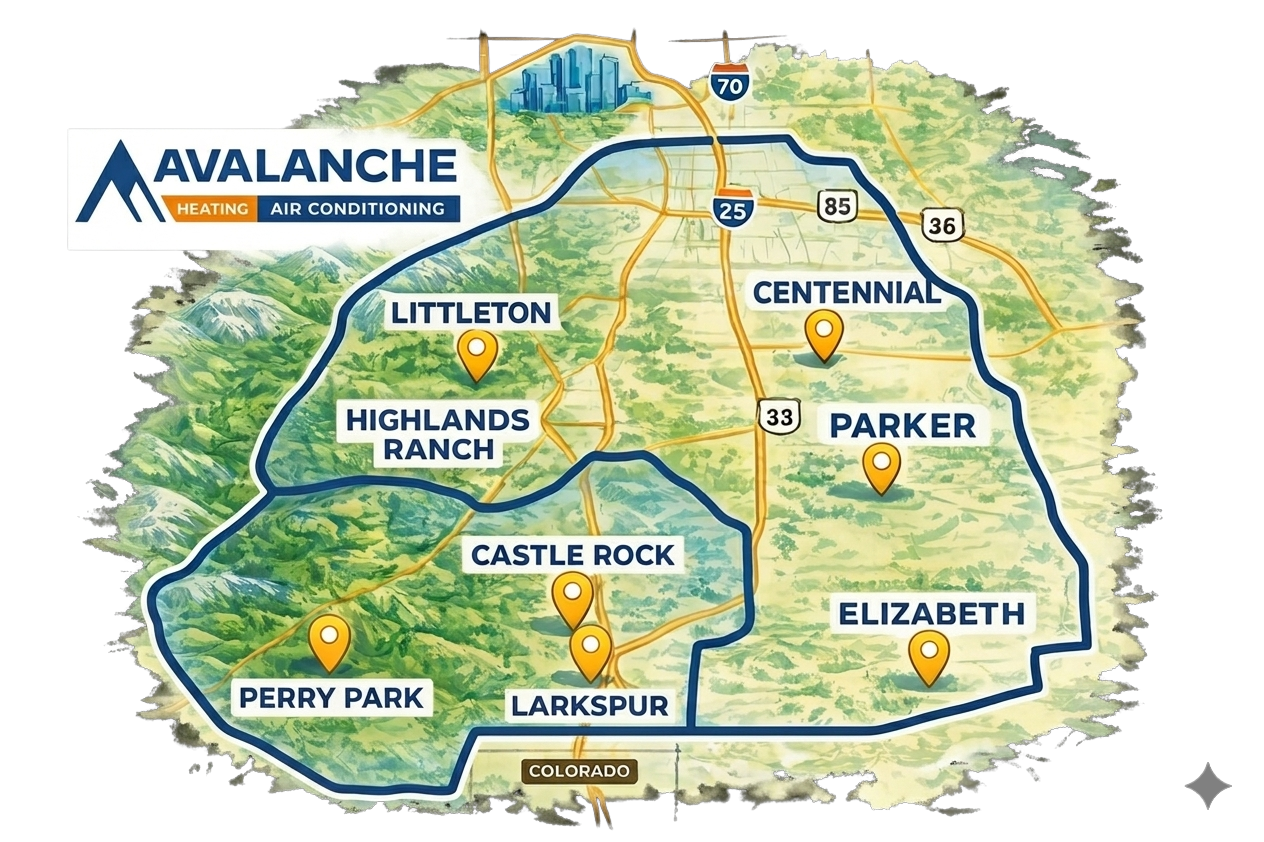 At Avalanche HVAC, we invite you to experience the comfort and peace of mind that comes from working with your trusted family-owned and operated HVAC professionals serving Castle Rock, Parker, Littleton, Centennial, Elizabeth, Larkspur, Perry Park and surrounding areas. Rely on our commitment to quality service as we provide comprehensive solutions for all your heating and cooling needs, including installation, maintenance, and repair. Our expertly trained team stands ready to deliver reliable, efficient, and friendly service, ensuring your home remains a sanctuary of comfort throughout the seasons. Choose Avalanche HVAC for personalized care and dependable service, because your satisfaction is our highest priority.